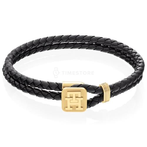 Čierny koženkový náramok na trojité obtočenie okolo zápästia, lodná kotva Z35.17
