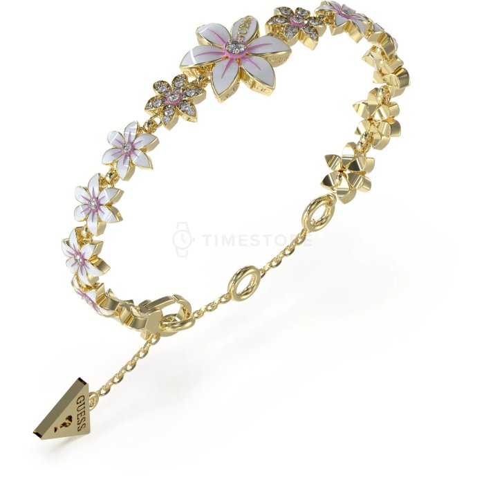 Oceľová retiazka na zápästie alebo na členok - kvietky, koliesko so zirkónom a rímskymi číslicami AB16.02