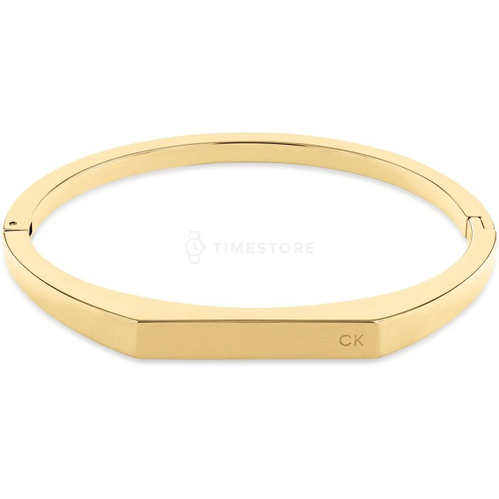 Náramok z ocele tvoria spojené kruhy ozdobené rímskymi číslicami a hranatými zirkónmi, zdvojená retiazka, medená farba.