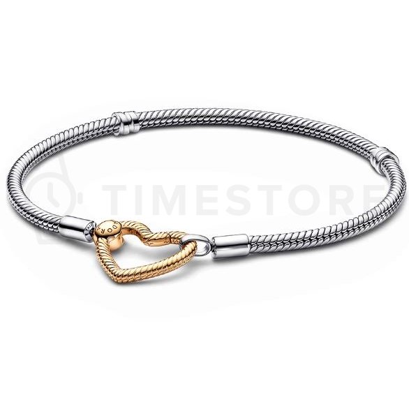 Strieborný náramok 925 - ploché srdiečko na retiazke, kruh a kolík Y56.10