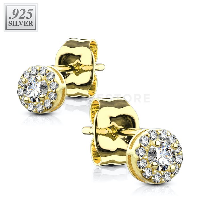 Náušnice zo žltého zlata 585 - číry okrúhly zirkón v objímke, 4 mm S1GG60.15